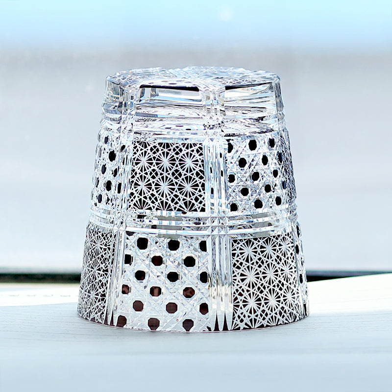 1)Technique:Mouth blown Color Cased Glass, fine precise hand cutting octagonal basket weave and the traditional Edo Kiriko's Chrysanthemum Mesh pattern