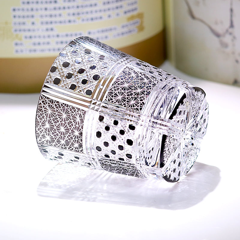 JP-008 320ml Hand Cut to Black Colored Whiskey Glass Tumbler Edo Kiriko Old Fashioned Glasses with Gift Box