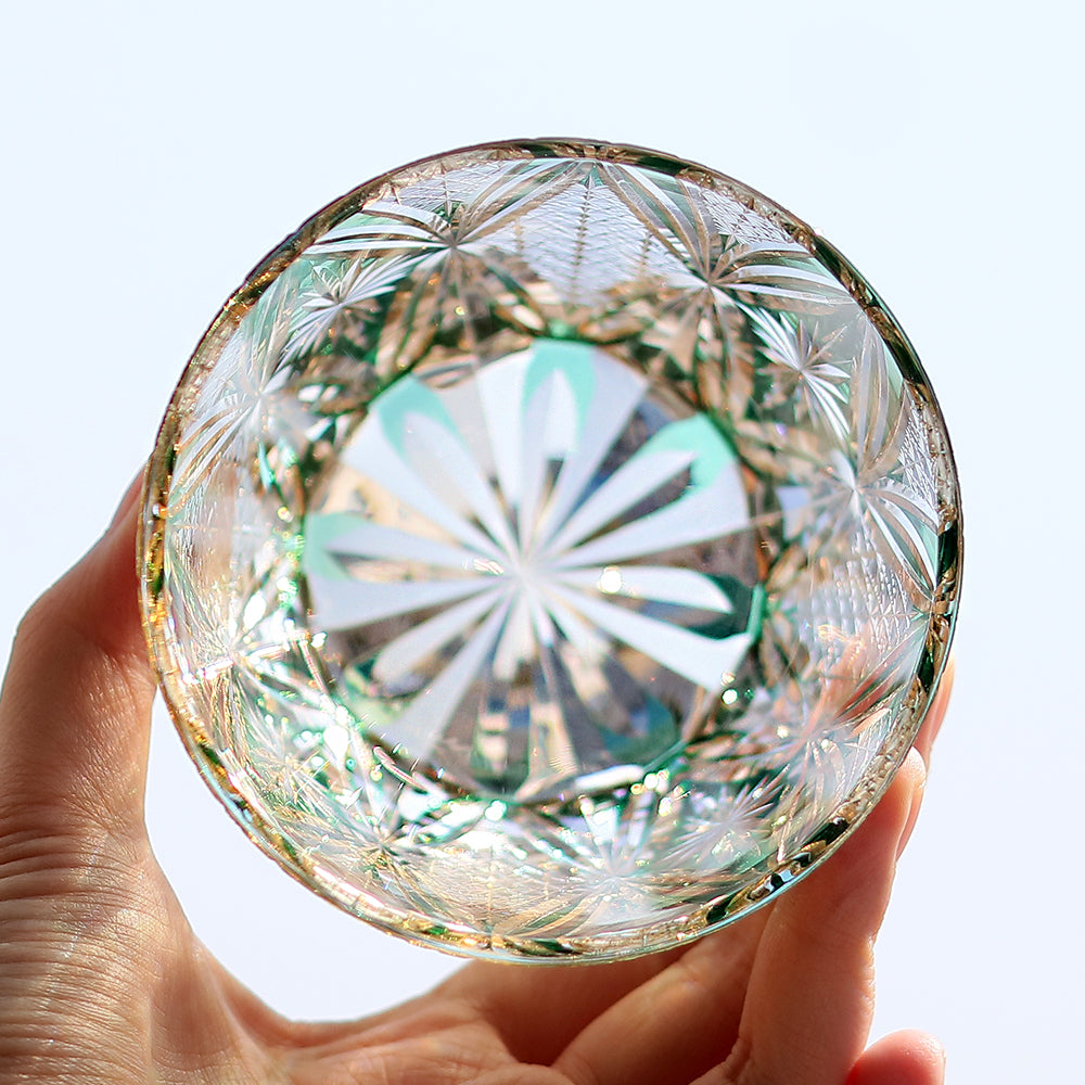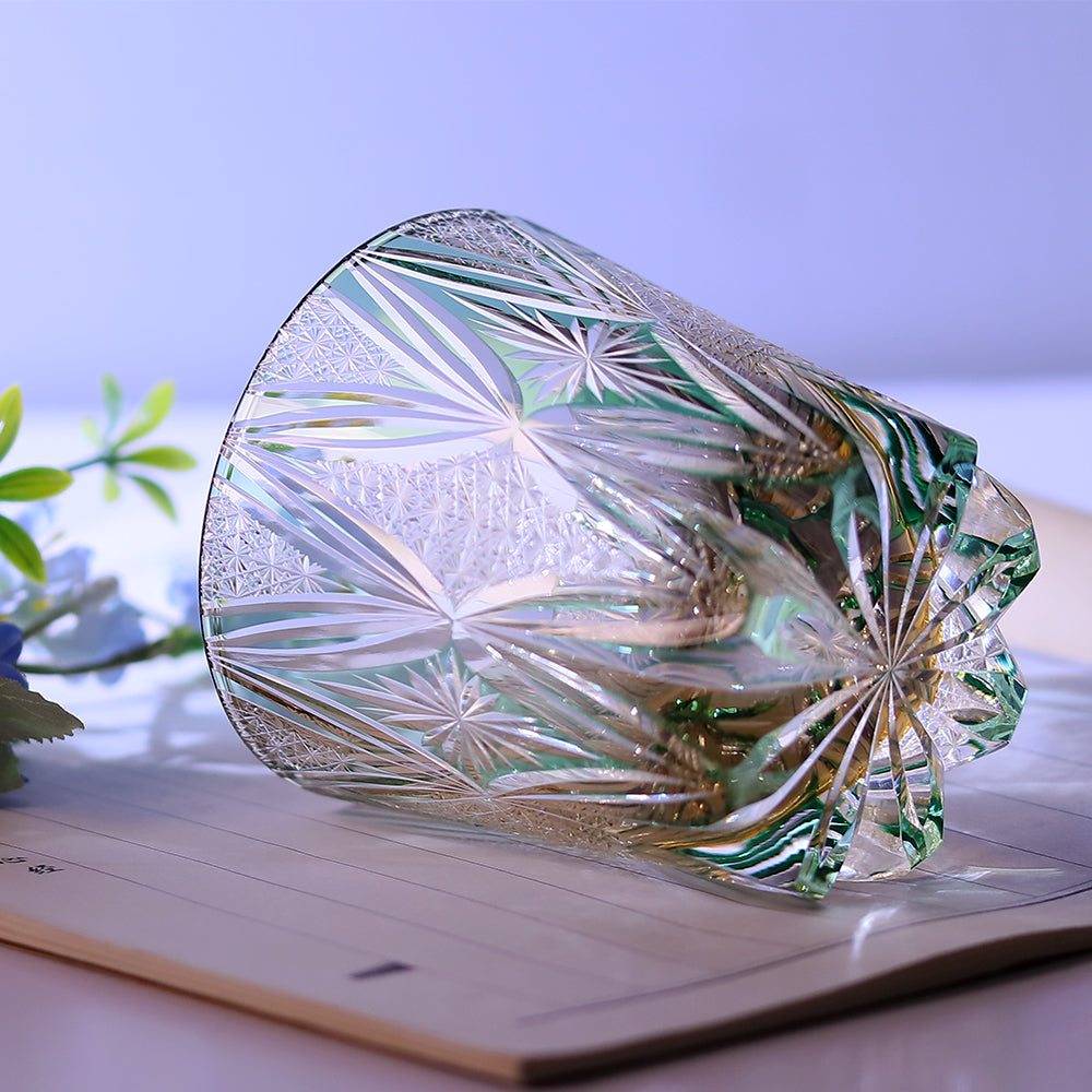 JP-013 320ml Handcrafted Green Edo Kiriko Whisky Glass Tumbler With Gift Box