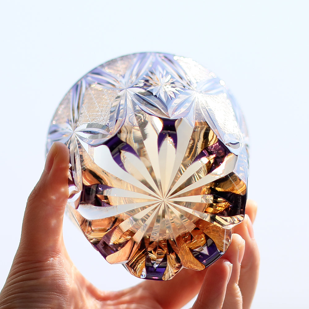JP-013 320ml Handcrafted Purple Edo Kiriko Whisky Glass Tumbler With Gift Box