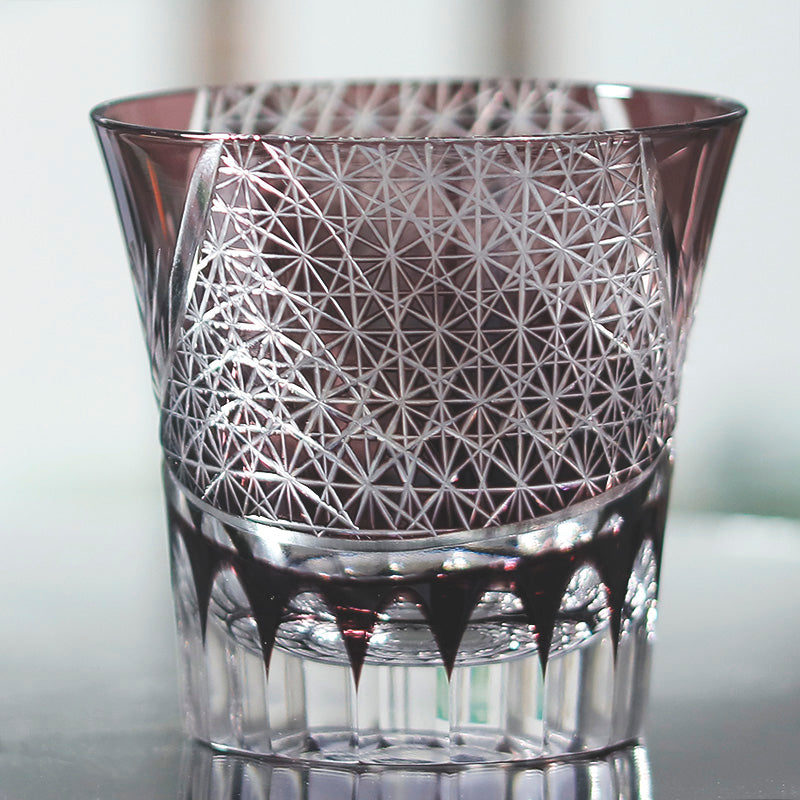 JP-017 220ml Flared Shaped Purple Color Cased Glass Whiskey Tumblers Edo Kiriko Bamboo leaves Rock glass