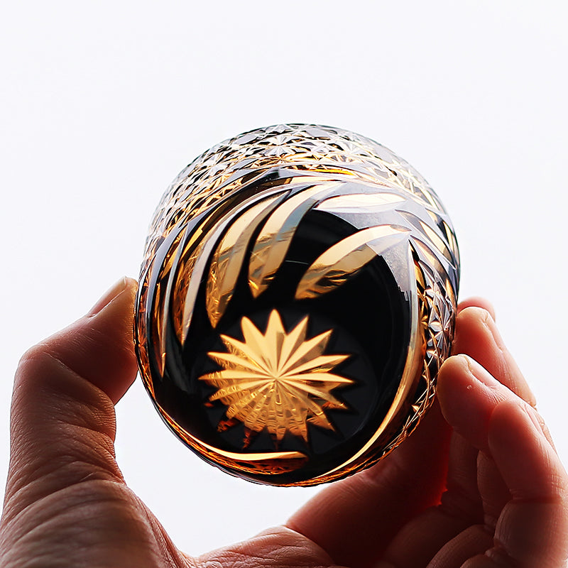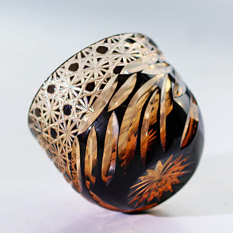 JP-031 60 ML Handcrafts Amber Black Cold Sake Glass Cup Edo Kiriko's Small Drinking Vessel