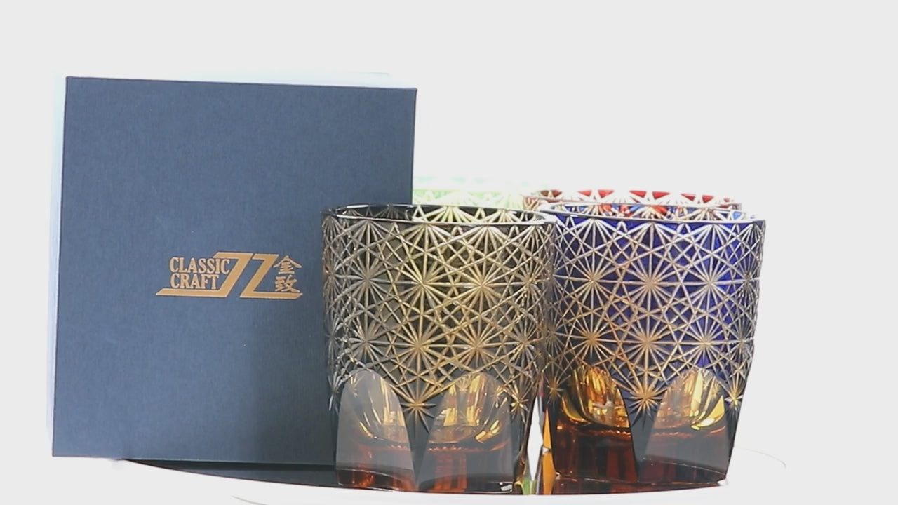 1)Technique:Mouth blown Color Cased Glass, Hand cut Chrysanthemum Design