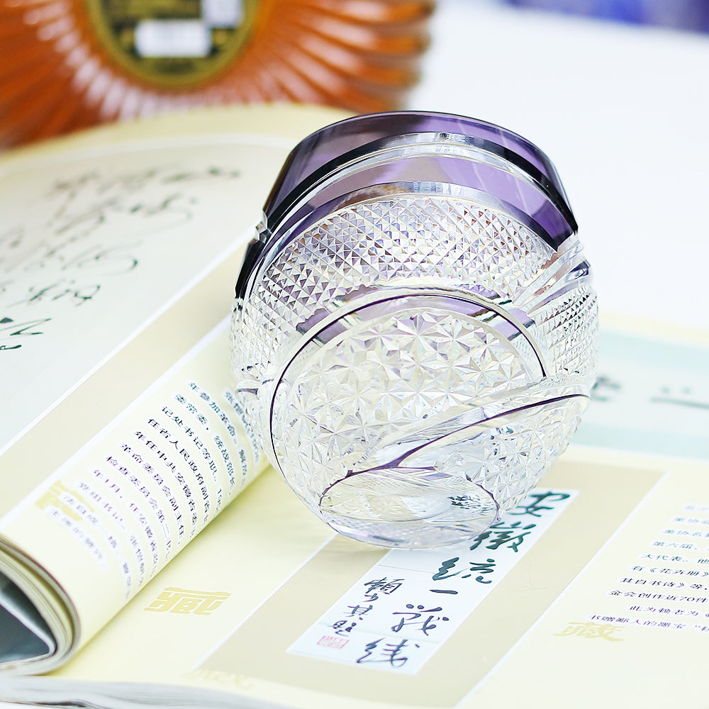 JP-057 300 ml Hand Cut to Clear Purple Water Juice Cup Round Curved Shape Crystal Cocktails Tumbler Purple Colored Crystal Glass Whisky Tumbler