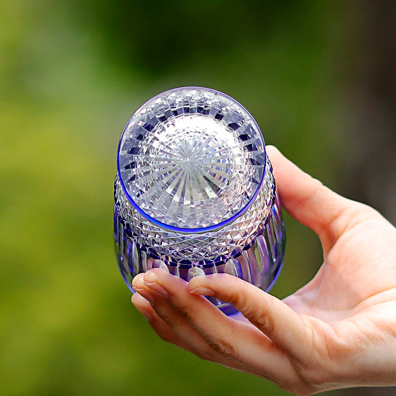 JP-094 Hand Cut To Blue Crystal Bar Service Hand Cut Star Shaped Base Highball Glass Tumblers Blue Crystal Glass High Tumbler 12.3oz