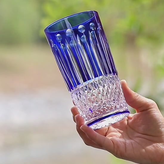 Serve your drinks in style with our beautifully crafted JP-094 Hand Cut To Blue Crystal Bar Service Highball Glass Tumblers. Made with premium hand-cut blue crystal and featuring a unique star-shaped base, these highball glasses will elevate your drinking experience and add a touch of elegance to any occasion. With a generous capacity of 12.3oz, these highball glasses are perfect for enjoying your favorite cocktails, mocktails, or other beverages. Treat yourself to the luxurious feel of our hand-cut crystal glasses and impress your guests with their beauty and quality.