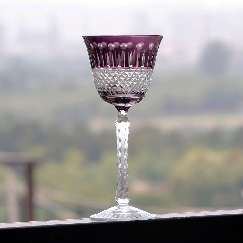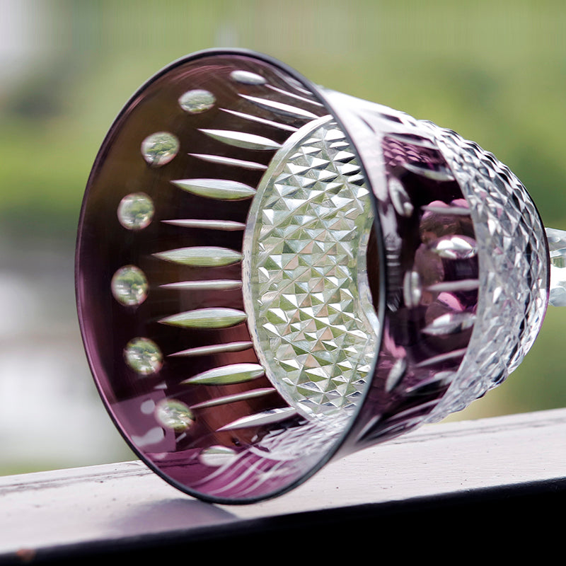 JP-097 150ml Hand cut to clear and purple colored crystal wine glass engraved Lotus Deisgn Hock Glass Goblet