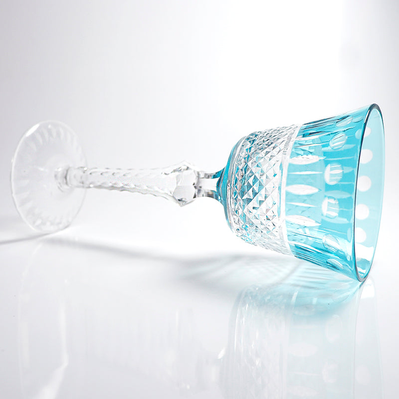 JP-097 150ml Hand Cut To Clear Colored Hock Glass Goblet Sky Blue With Hand Cutting Lotus Deisgn