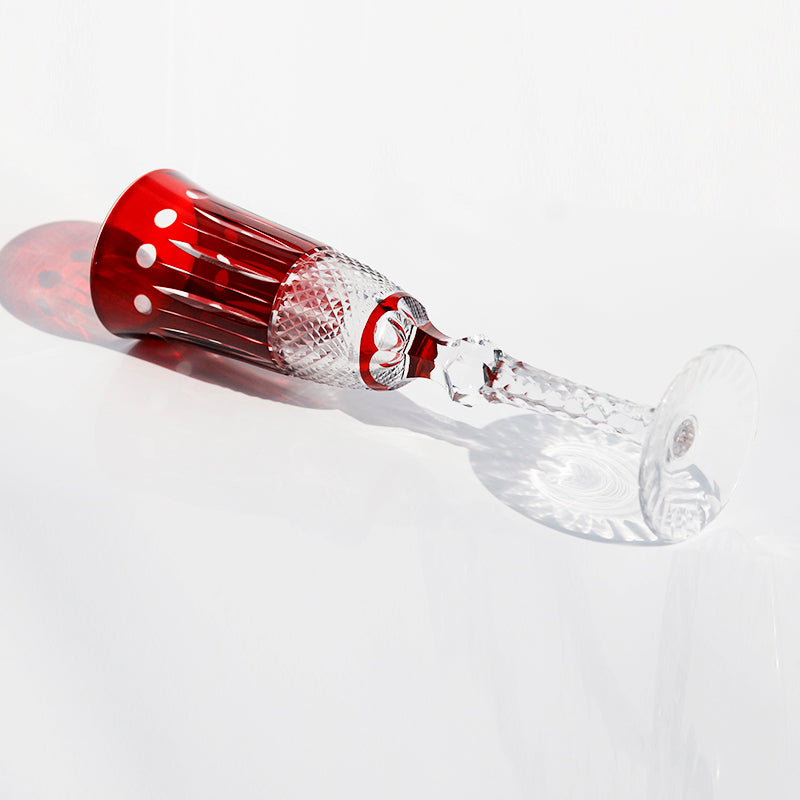 2, Craft:Hand Blown Color Cased Glass, Hand Engraved star-shaped base to the sparkling glints of the diamond, bevel, pearl and rim cuts