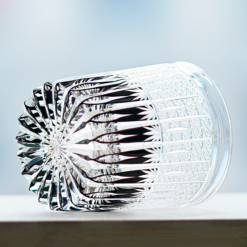 1)Technique:Mouth blown Color Cased Glass, fine precise hand cutting kaleidoscopic design and the traditional Edo Kiriko's Chrysanthemum Mesh pattern