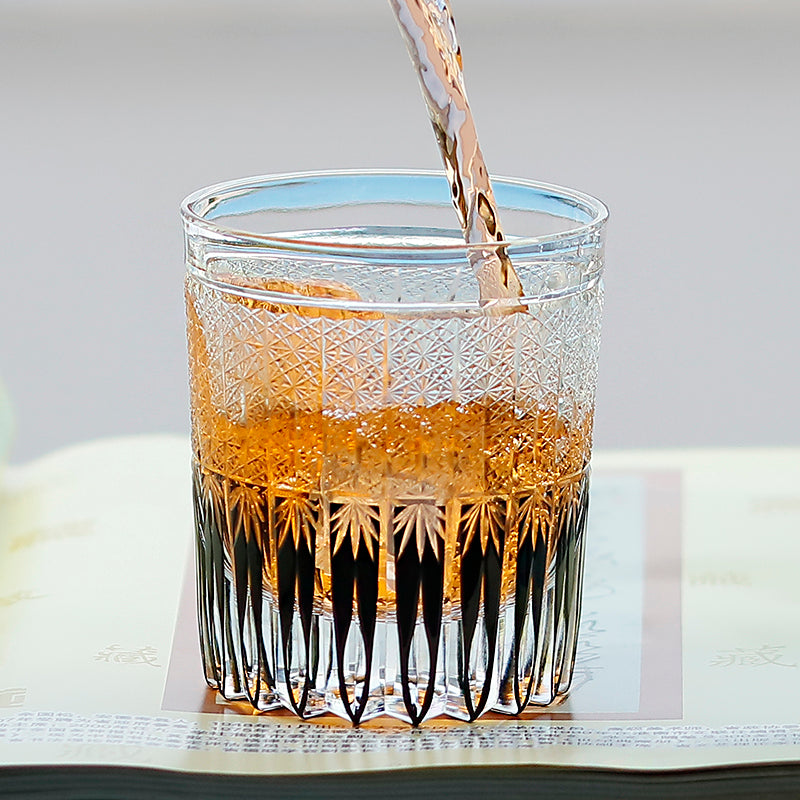 JP-130-1 Japanese Style Edo Kiriko Handcrafted Stellar Nexus Whisky Glasses Black With Gift Box