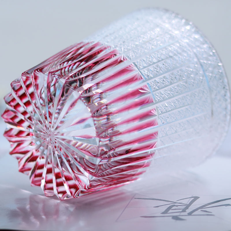 JP-130-2 Luxury Gold Pink Crystal Glass Whiskey Old Fashioned Tumbler Edo Kiriko Gold Pink Rocks Cocktail Cup With Gift Box